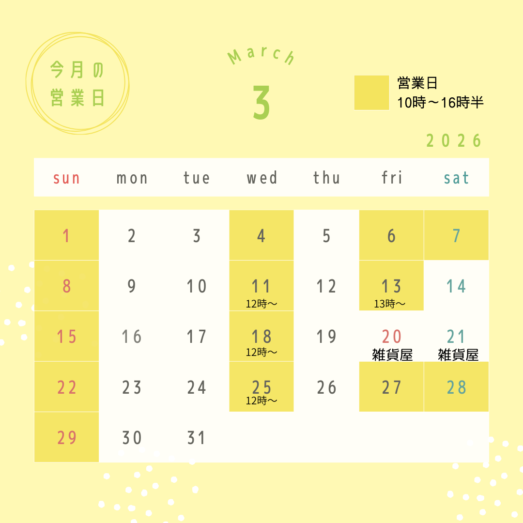 ・2/20(祝)、21(土)は絵本屋はお休みですが、雑貨店さんがopenです。